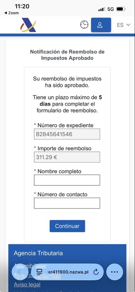 Cuando pulsas, llegas a una página que visualmente se parece mucho a la de la Agencia Tributaria.