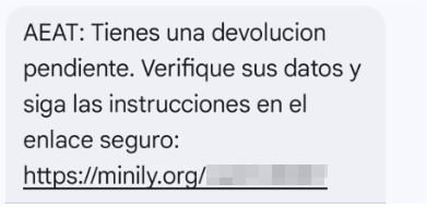 Son mensajes muy breves, muy directos, tipo “Su devolución está disponible”, “Incidencia en su expediente” o “verifique sus datos”…Y, por supuesto, acompañados de un enlace.