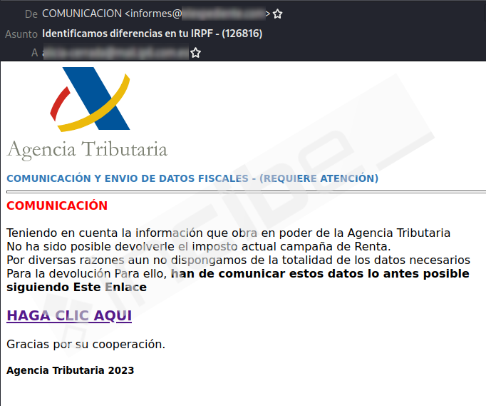 Y, por otro, coincidiendo con el arranque de la campaña de la Renta 2026, ya están circulando también mensajes y correos que suplantan a la Agencia Tributaria.